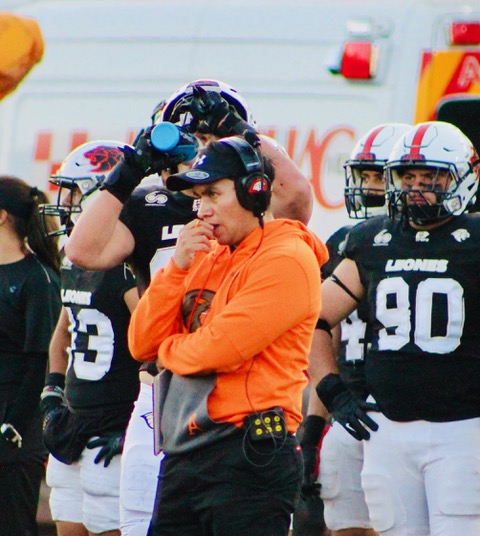 Huixquilucan de Degollado, Méx., a 7 de marzo de 2025.- En el juego inaugural de la temporada 2025 de categoría intermedia de la ONEFA, los Leones de la Universidad Anáhuac México Norte (UAMN), se impusieron a los Leones Negros de la Universidad de Guadalajara (U de G) por 40 puntos a siete, pizarra con la que el HC Eduardo Leonel Herrera debutó exitosamente al frente del equipo.